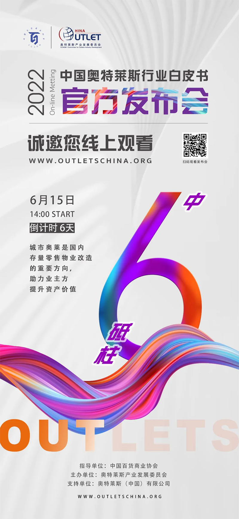 2022年6月15日14:00,《2022年中國奧特萊斯行業(yè)白皮書》線上發(fā)布會即將正式開始,本次發(fā)布會,將對國內(nèi)零售市場及奧萊產(chǎn)業(yè)引入中國20年發(fā)展的經(jīng)驗及機遇做出全新解讀。