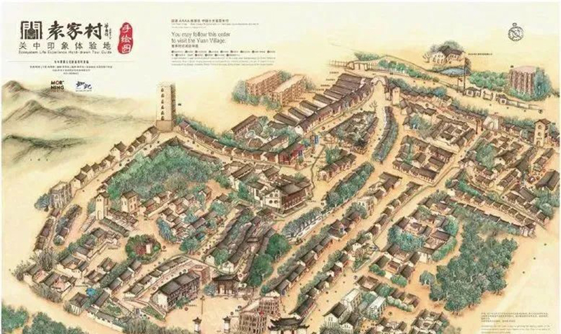 國(guó)內(nèi)知名鄉(xiāng)村旅游地——“袁家村”手繪圖