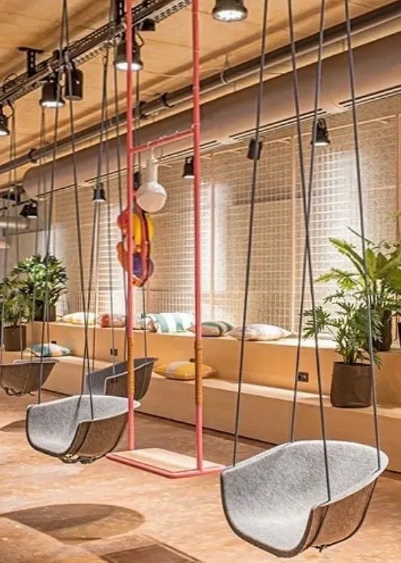 空間以明亮的粉彩和摩登風(fēng)格將顧客帶入加利福尼亞的風(fēng)情世界,還通過(guò)一系列不同尋常的材料組合,為顧客提供不一樣觸覺(jué)、視覺(jué)體驗(yàn)的潮酷餐飲空間。顧客可以選擇坐在落地窗前邊品嘗美食,邊欣賞對(duì)面動(dòng)物園的猴山;也可以選擇以鳥(niǎo)籠為靈感設(shè)計(jì)的沙發(fā)區(qū),或是以階梯座的秋千林立的休閑區(qū)等。