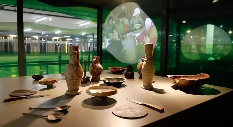 項目舊址在1940年的一次戰(zhàn)爭中歷史建筑都被摧毀,Markthal市場再建設(shè)時,地下考古團(tuán)隊發(fā)現(xiàn)了各種各樣的中世紀(jì)物品。為予以紀(jì)念,便以垂直展覽的形式在市場內(nèi)的自動扶梯上展示。