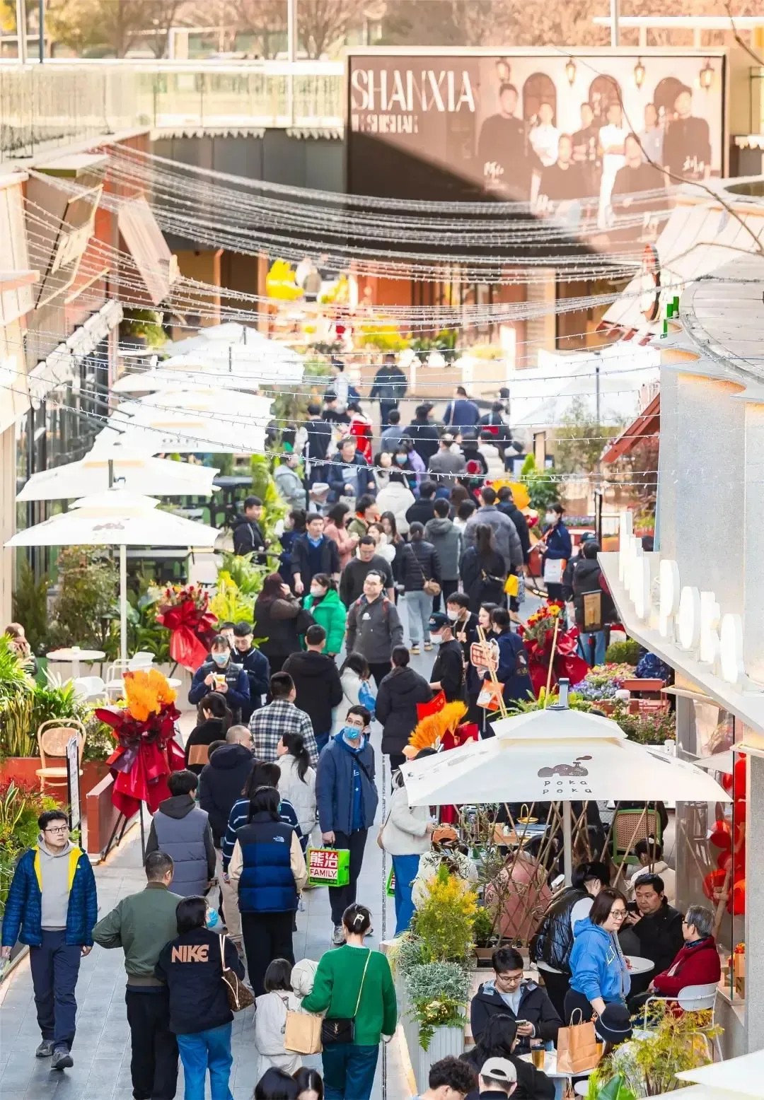 在“山下”,游客們仿佛置身于一場(chǎng)盛大的派對(duì)之中,無(wú)論是漫步于獅子山下,還是沉浸在社交互動(dòng)之中,都能感受到那份精致的人間煙火氣。開(kāi)業(yè)慶典上,萌寵大賽、現(xiàn)場(chǎng)樂(lè)隊(duì)演奏及煙花秀等精彩活動(dòng)輪番上演,為消費(fèi)者帶來(lái)了一場(chǎng)視聽(tīng)盛宴,吸引了眾多熱愛(ài)生活、追求社交的年輕人。此外,項(xiàng)目還貼心地在凹嵌的“石壁”處設(shè)置了休息區(qū),為游逛的客人提供了一個(gè)靜謐的休憩與社交空間,讓人仿佛置身于世外桃源,享受片刻的寧?kù)o與放松。