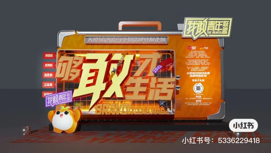 去年,大悅城深刻洞察青年群體的內(nèi)心世界與情感需求,精心策劃了全國(guó)性的品牌活動(dòng)《夠敢才生活》,該活動(dòng)以“敢”為核心理念,貫穿全國(guó)城市聯(lián)動(dòng)推廣的每一個(gè)環(huán)節(jié)。旨在通過(guò)一系列活動(dòng),幫助年輕人釋放壓力、緩解焦慮,同時(shí),大悅城也致力于與消費(fèi)者攜手共創(chuàng)商業(yè)新生態(tài),實(shí)現(xiàn)商業(yè)與情感的正向循環(huán)與雙贏。