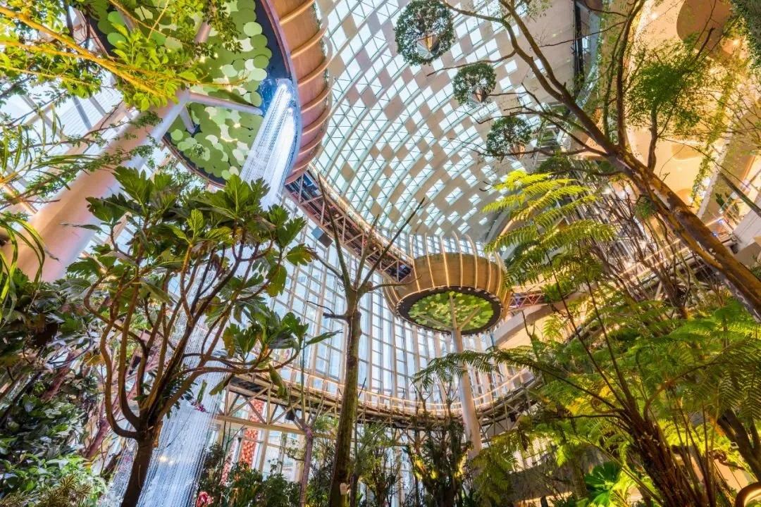 在重慶光環(huán)的深處,自然與商業(yè)的邊界被徹底打破。位于中央的15米高“生命之樹”(鳳凰木)巍然矗立,與20多米的“花之瀑谷”及40米高空的“懸浮森林”共同繪制出三大夢幻場景。瀑布水幕高約25米,水流如絲,與來自全球的300余種、數(shù)萬株熱帶雨林植物交織成一幅生動的自然畫卷,讓商業(yè)空間煥發(fā)出勃勃生機(jī)。四季更迭,植物園內(nèi)景致各異,每一季都有新的色彩與故事等待被發(fā)現(xiàn)。