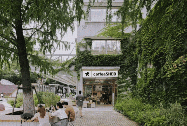 在上生·新所二期,森系場景只是其迷人的外衣,而真正觸動人心的是其以休憩為核心的設(shè)計理念。從戶外廣場的舒適座椅,到商店門前的精致花圃圍欄與臺階,每一處細(xì)節(jié)都精心考量,旨在為訪客提供充足的休憩空間。多維度的公共空間布局,讓漫步其中的人們感受到前所未有的松弛與愜意,仿佛時間在這里放慢了腳步。此外,樓頂?shù)倪\(yùn)動平臺與屋頂花園更是賦予了這片空間更多的社交屬性,成為都市人放松身心、交流互動的新天地。