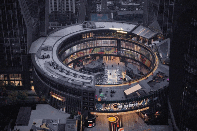 「濟高·世茂芯環(huán)中心」則以圓環(huán)形態(tài)的建筑設計特色亮點,給人留下超深刻的印象。圓環(huán)鏤空、下沉廣場、屋頂花園、戶外廣場、兒童露臺區(qū)等多首層立體布局,站在「非標」視角為年輕力潮流文化客群接連獻上強社交、高互動的演繹內(nèi)容。