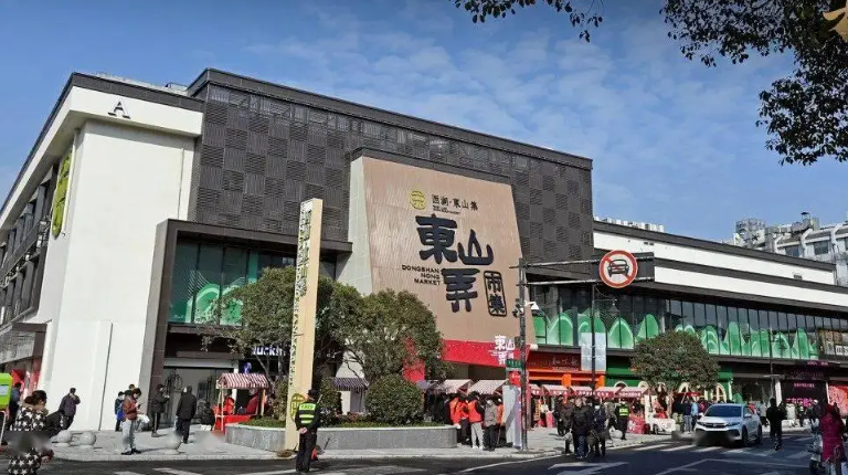 杭州東山弄市集位于杭州市西湖區(qū)靈隱街道外東山弄86號,其前身為東山農(nóng)貿(mào)市場,2024年12月12日,經(jīng)過近一年的升級改造,以西湖?東山集的新面貌正式開業(yè)。