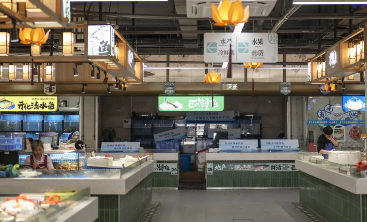 改造后的福明菜場對空間進(jìn)行了重新規(guī)劃,設(shè)置了蔬菜、水果、肉類、海鮮、禽蛋、豆制品、熟食等不同的功能區(qū)域。除了傳統(tǒng)的農(nóng)產(chǎn)品攤位外,福明菜場還引入了許多特色業(yè)態(tài)。如增加了鮮花店、烘焙坊、小吃店、便利店等,滿足了消費者在購物過程中的多樣化需求。同時,還設(shè)置了一些品牌農(nóng)產(chǎn)品專賣店,提供高品質(zhì)的特色農(nóng)產(chǎn)品,提升了菜場的檔次。