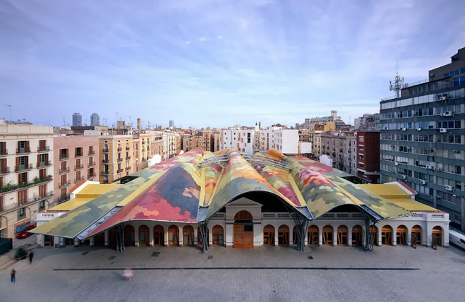 在改造過程中,設(shè)計師充分尊重市場的歷史和傳統(tǒng),保留了原有的建筑結(jié)構(gòu)和部分古老的攤位設(shè)施。同時,引入了現(xiàn)代化的設(shè)計理念,如采用新型建筑材料、優(yōu)化空間布局、增加環(huán)保設(shè)施等,使市場既具有歷史底蘊,又充滿現(xiàn)代活力。如,波浪形的彩色屋頂,由不同顏色的陶瓷碎片拼接而成,宛如一幅巨大的抽象畫,為市場增添了獨特的藝術(shù)氛圍。