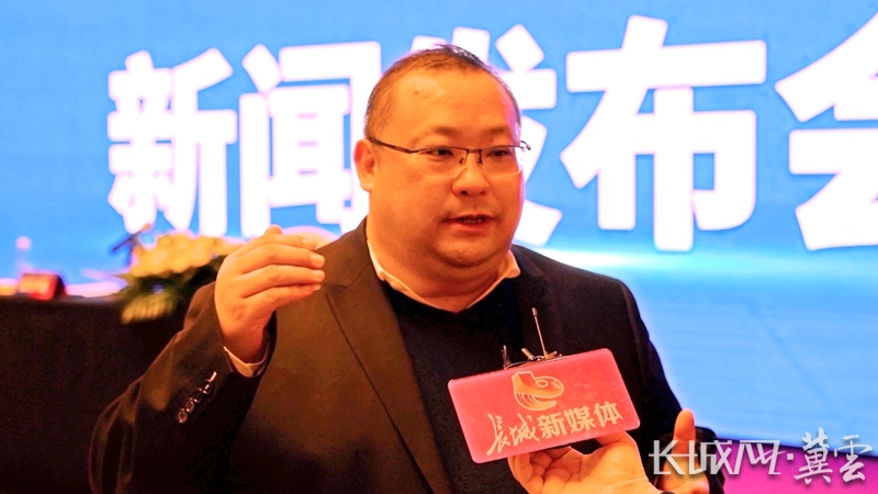 奧特萊斯(中國)總裁吳永康在新聞發(fā)布會上回答記者提問。長城網(wǎng)·冀云客戶端記者 蘇曉瑞 攝